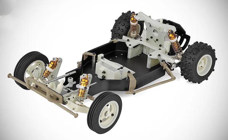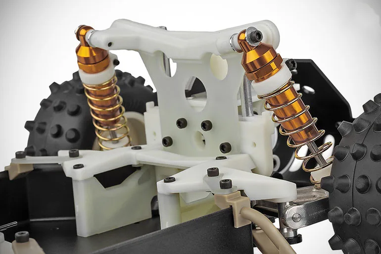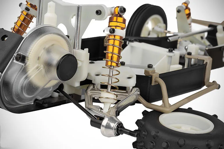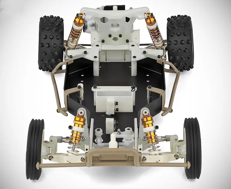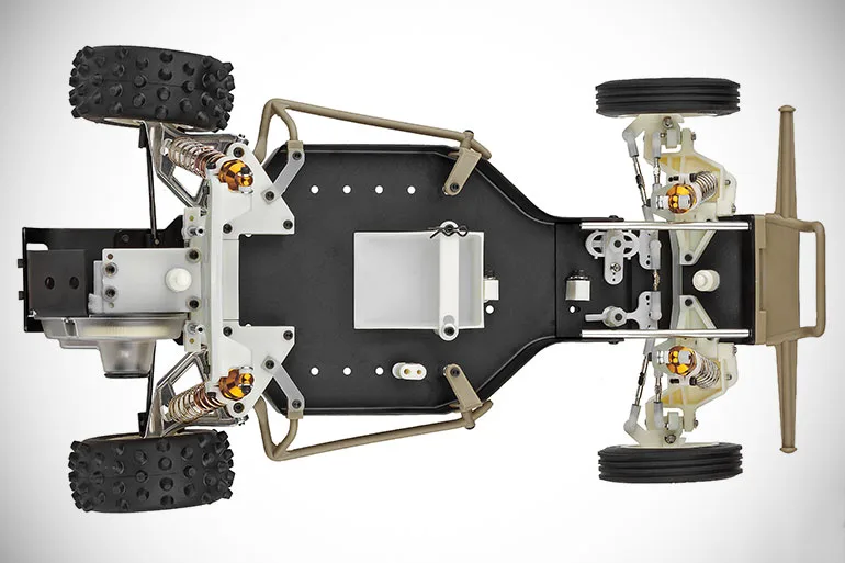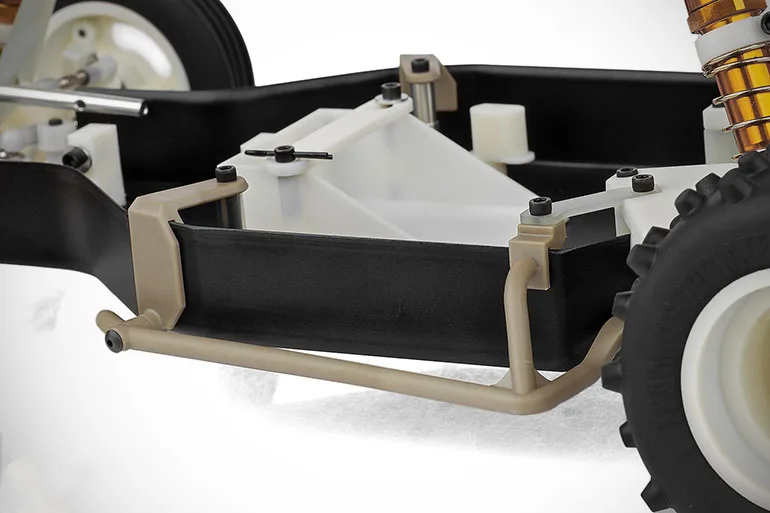 Des détails haut de gamme complètent le tout, y compris des tirants en acier filetés pour un réglage précis, des amortisseurs en aluminium anodisé doré à long débattement pour des performances et un look classiques, ainsi qu'un ensemble de carrosserie Protech conforme à l'usine avec des décalcomanies authentiques capturant l'esprit indéniable des illustrations de la boîte.